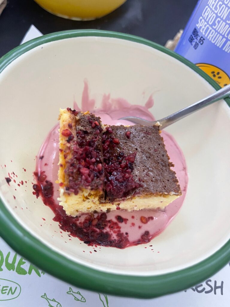 con queso fresco y torta de «La Pasiega de Peña Pelada» y sorbete de frambuesa.
